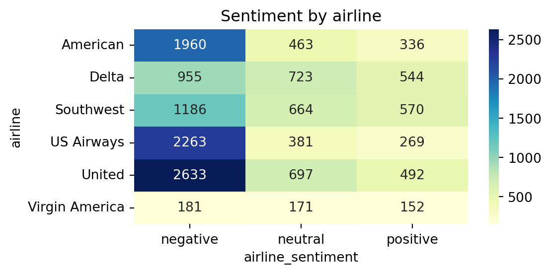 American also attracts many complaints, whereas Southwest shows a comparatively higher share of positive tweets.