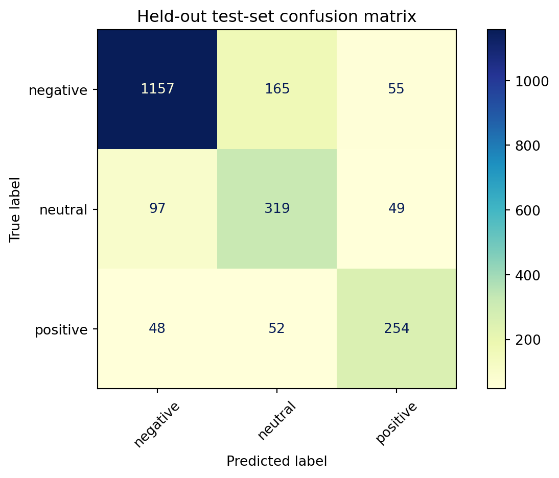 plt.title("Held‑out test‑set confusion matrix" )