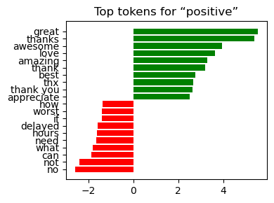 ax.set_title(f"Top tokens for “ { classes[class_id]} ”" )