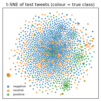 7. T-SNE Projection of Test Tweets (Colour = True Class)
